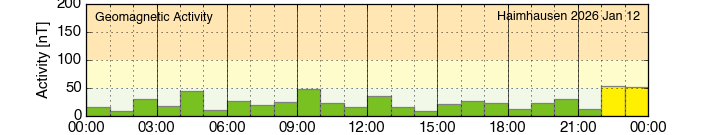 up to 1500 nT can occur. Depending on the disturbance level, the magnetogram uses different scales identified by the background color